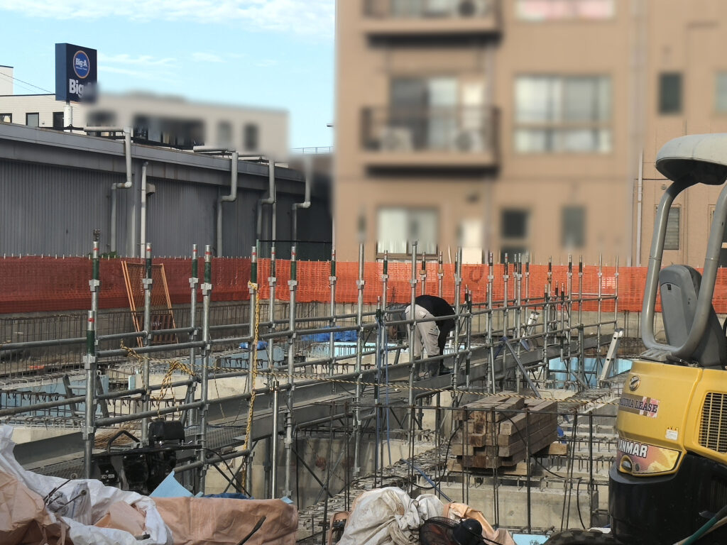 先月は基礎工事を行っていましたが、今月はその基礎にコンクリートを流し込み、固める作業が終わりました。建物を支えるための大切な土台が完成し、次の工程に進む準備が整っています。