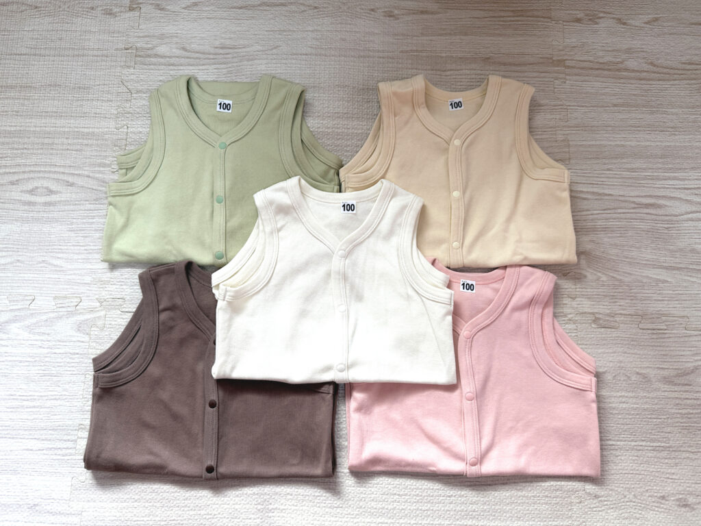 柔らかな肌ざわりで、汗ばむ季節にも快適に過ごせるノースリーブは、日々の保育の中で大切に活用させていただきます。